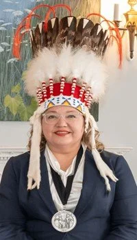 National Chief Cindy Woodhouse Nepinak was born and raised in Pinaymootang First Nation, Manitoba. Her ancestor, Chief Richard Woodhouse, was an original signatory of Treaty No.2. She began her term as National Chief of the Assembly of First Nations on December 7, 2023, becoming the youngest woman and mother to hold the position.